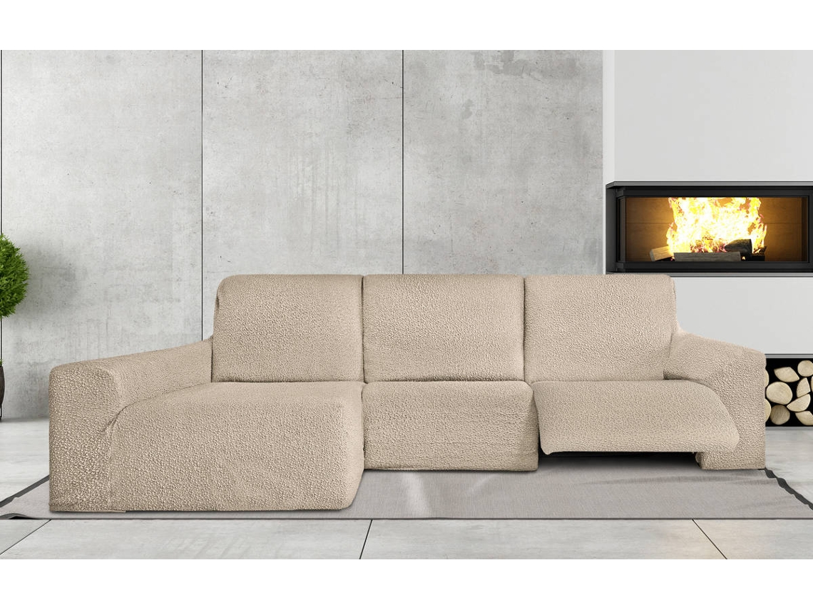 Capa Tecido Elástico para Sofá Chaise Longue Relax em Forma de L MILICA Assentos Reclináveis e Orientação Esquerda Spongy Bege