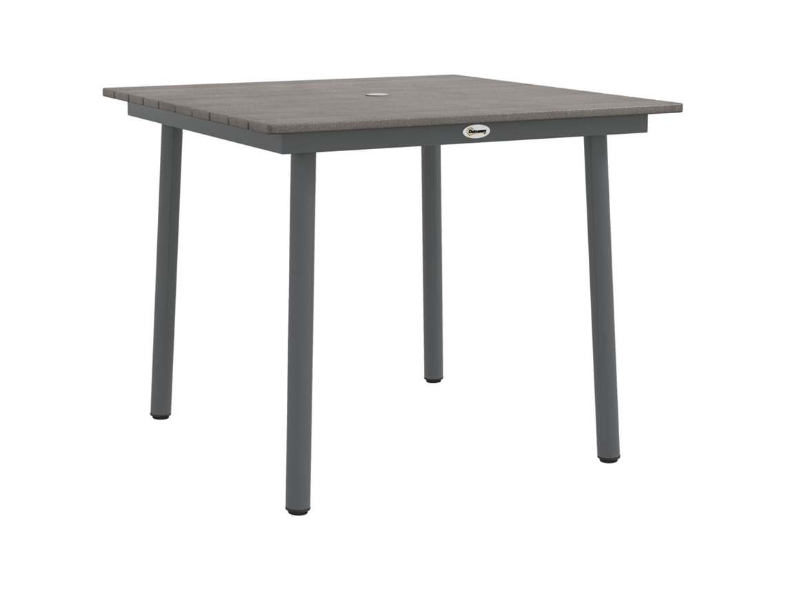 Mesa De Jardim, Mesa De Jantar, 4 Pessoas, Mesa De Pátio Com Furo Para Guarda Chuva, Estrutura De Ripas, Hdpe, Cinza Escuro, 90x90x75cm Ehstmind