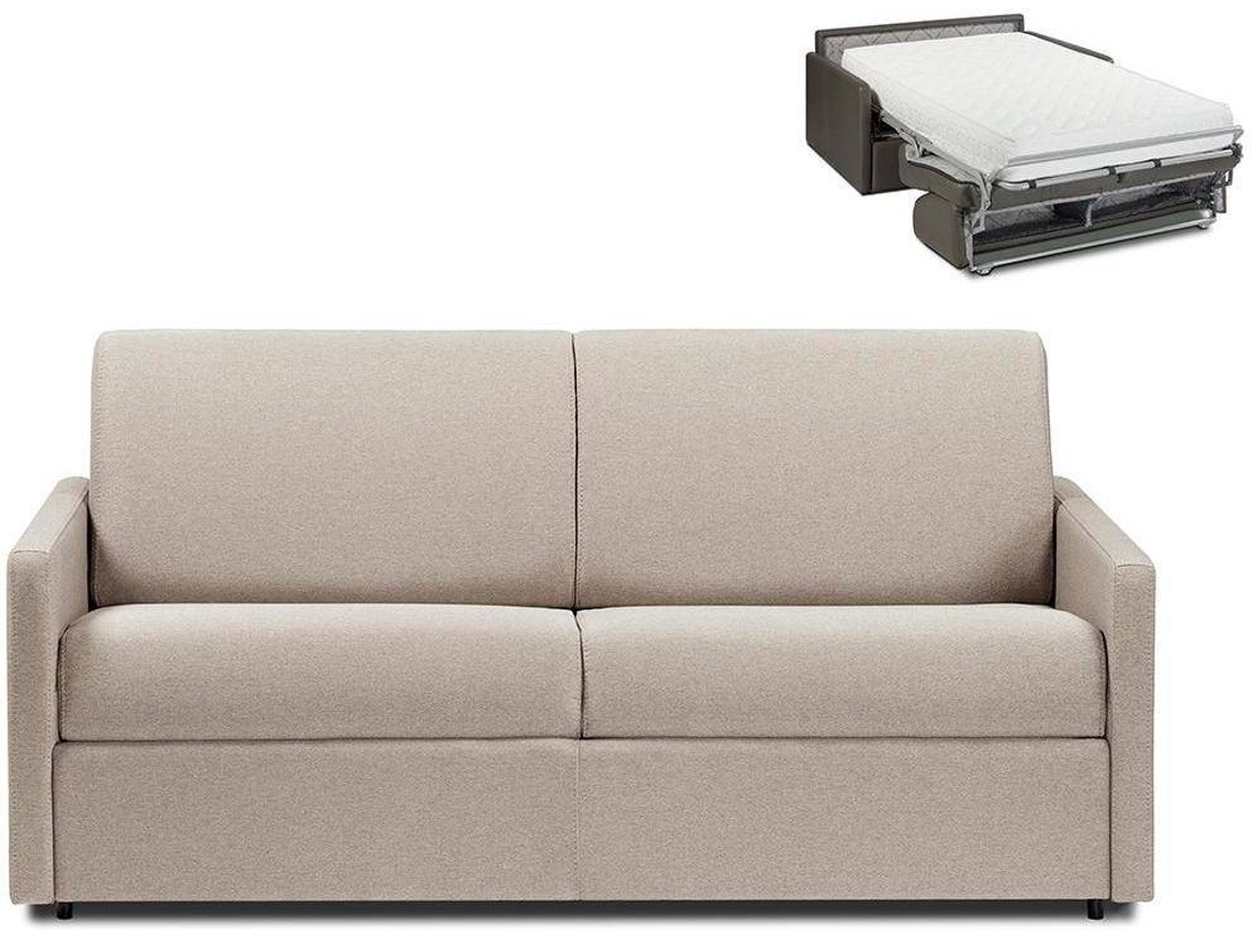 Sofá Cama Calife VENTE-UNIQUE (Bege - Tecido e Veludo - 170x94x85 cm/Dimensões da cama: 140-159 cm)