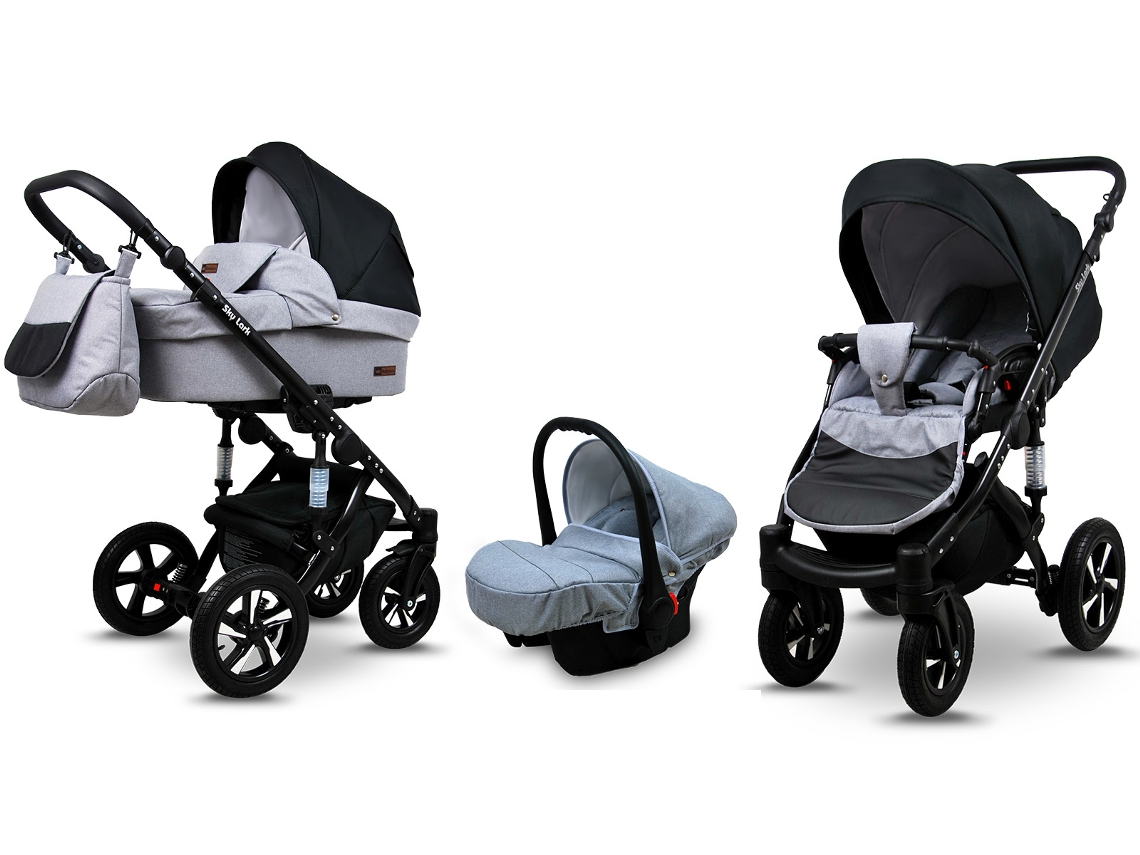 Carrinho de Bebé Multifuncional BABYLUX SKY LARK 3 Em 1 -Silver Flex Black BLACK FRAME - Ajustável e dobrável Construção leve em alumínio - Acessórios