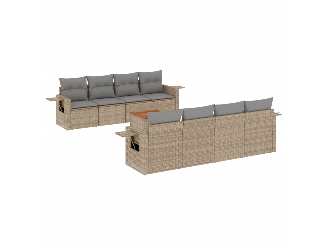 Conjunto 9 de sofás p/ jardim com almofadões vime PE bege