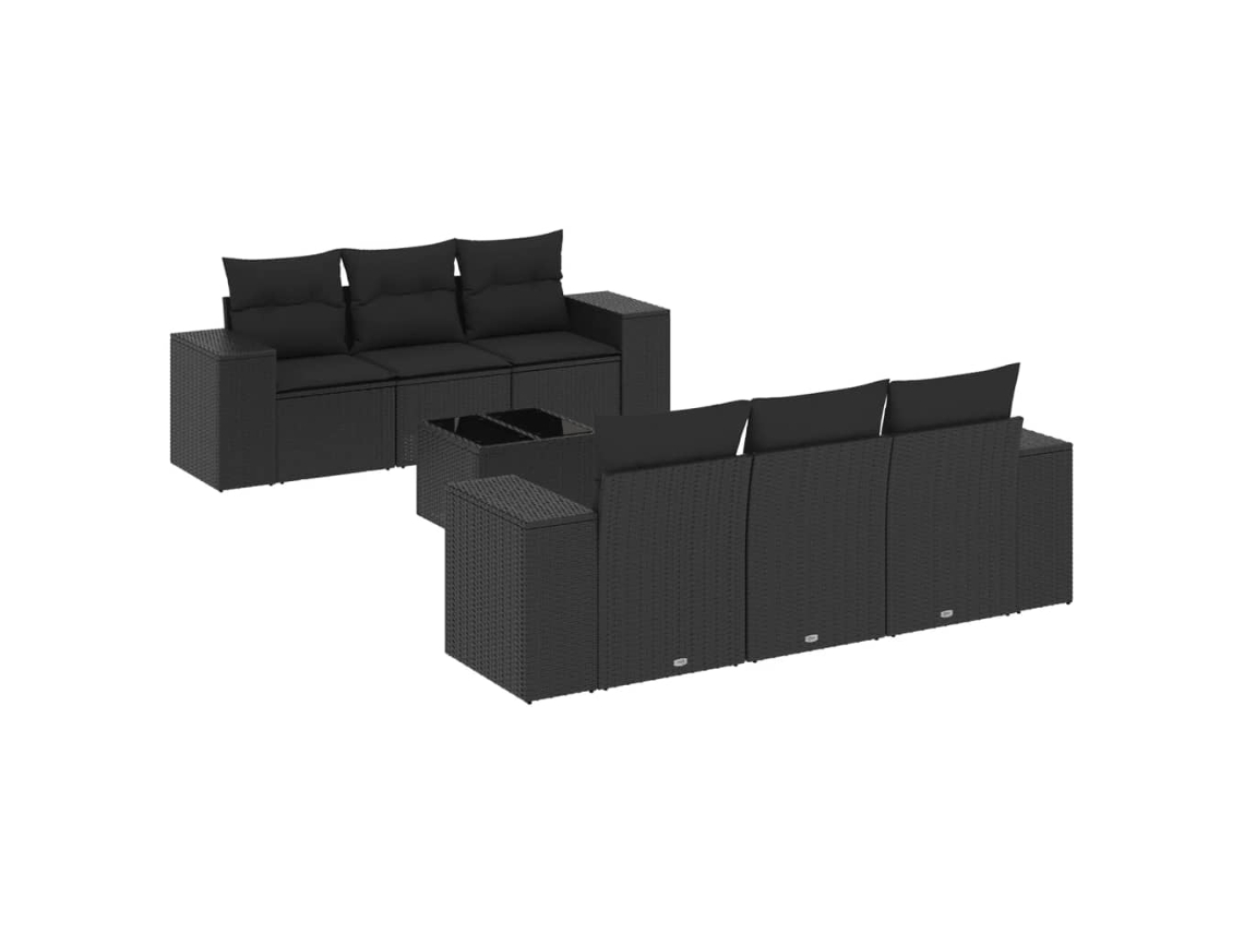 Conjunto 7 de sofás p/ jardim c/ almofadões VIDAXL vime PE preto