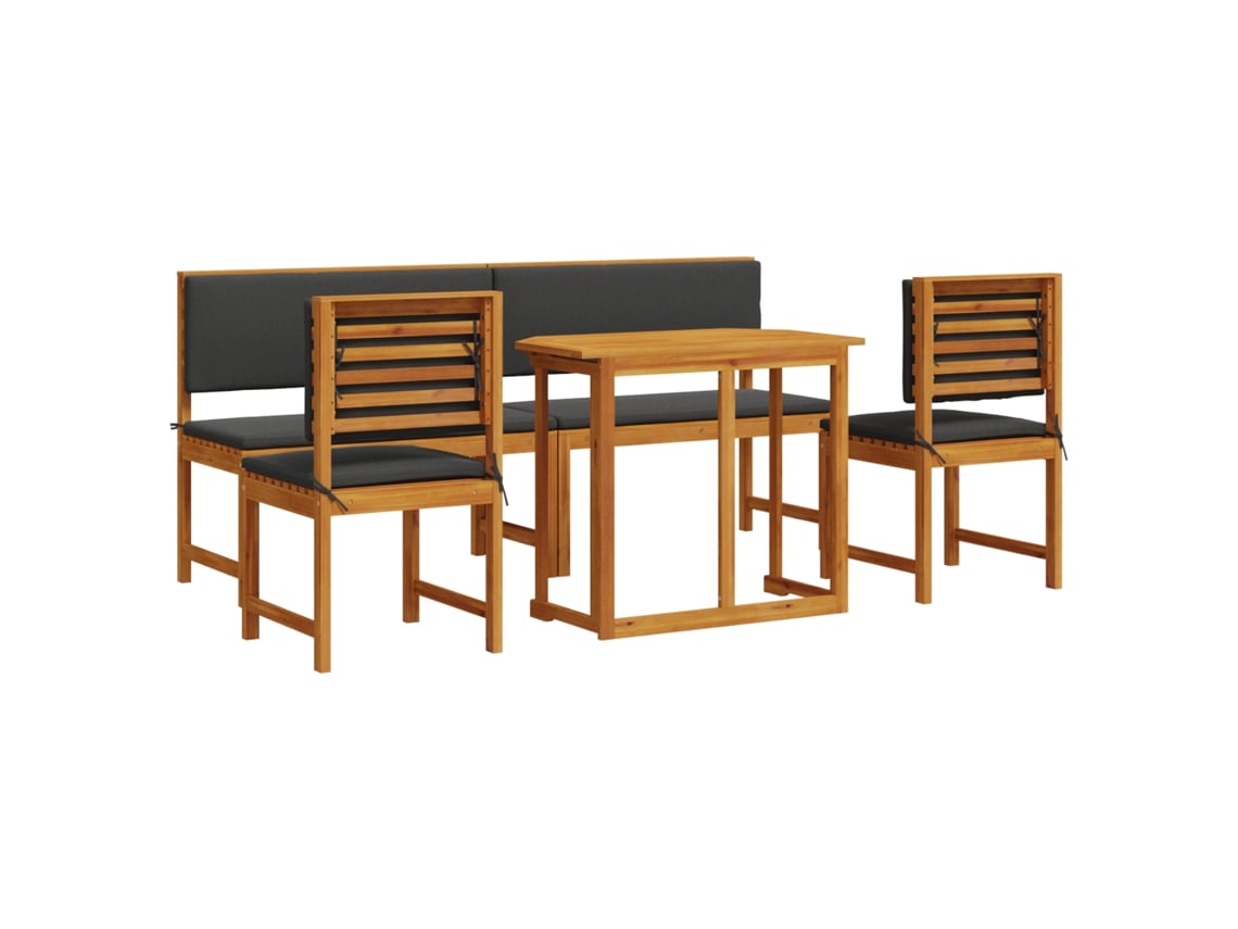 Conjunto 5 De Jantar Para O Jardim De Vidaxl Com Almofadas Em Madeira Sólida De Acácia