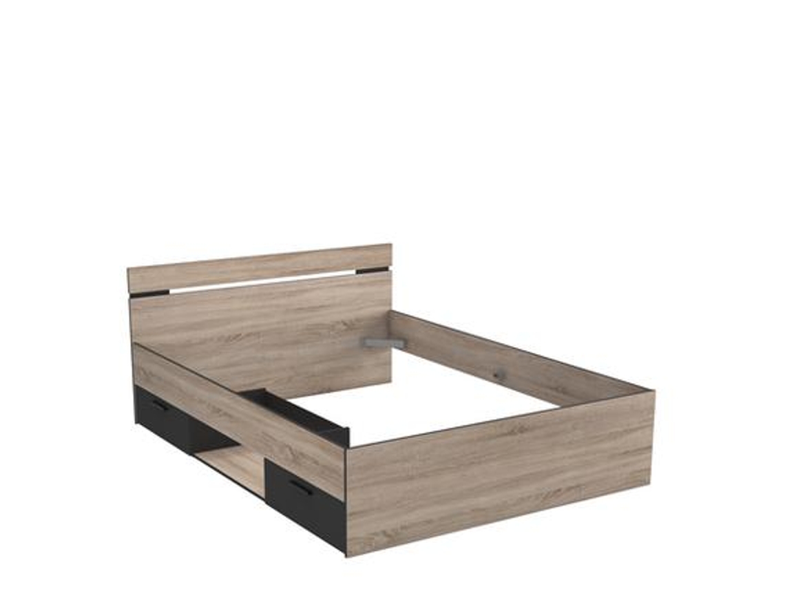 Cama Michigan Cor Carvalho/Preto 190X140 C/2 Gavetas
