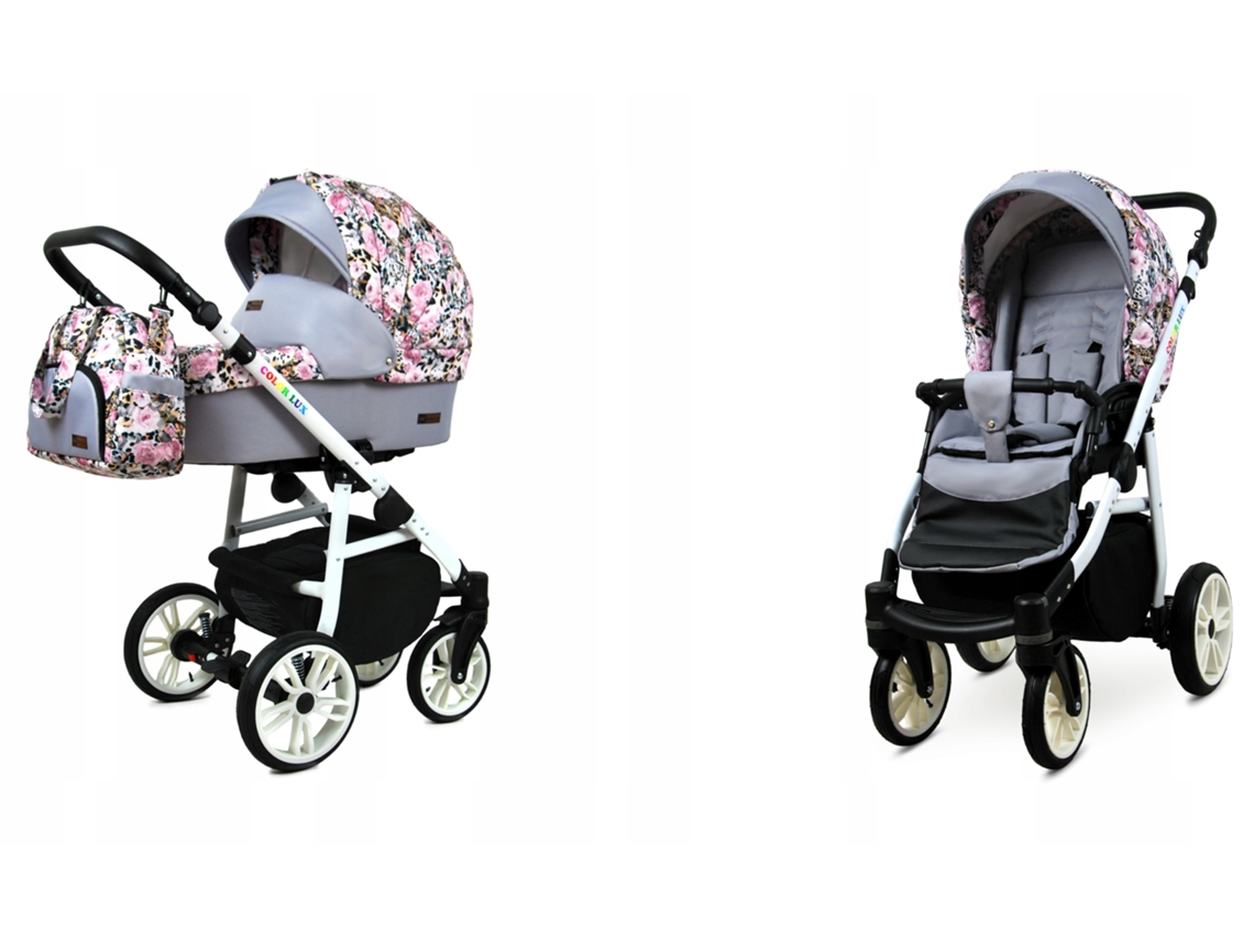 Carrinho de Bebé Multifuncional BABYLUX CLASSIC GOLD 2 Em 1 -Albion Roses On Leopard WHITE FRAME - Ajustável e dobrável Construção leve em alumínio