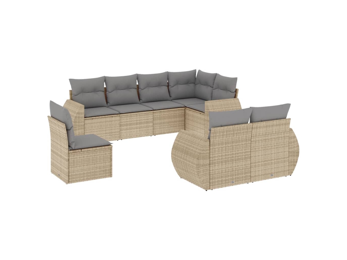 Conjunto 8 de sofás p/ jardim VIDAXL com almofadões vime PE bege