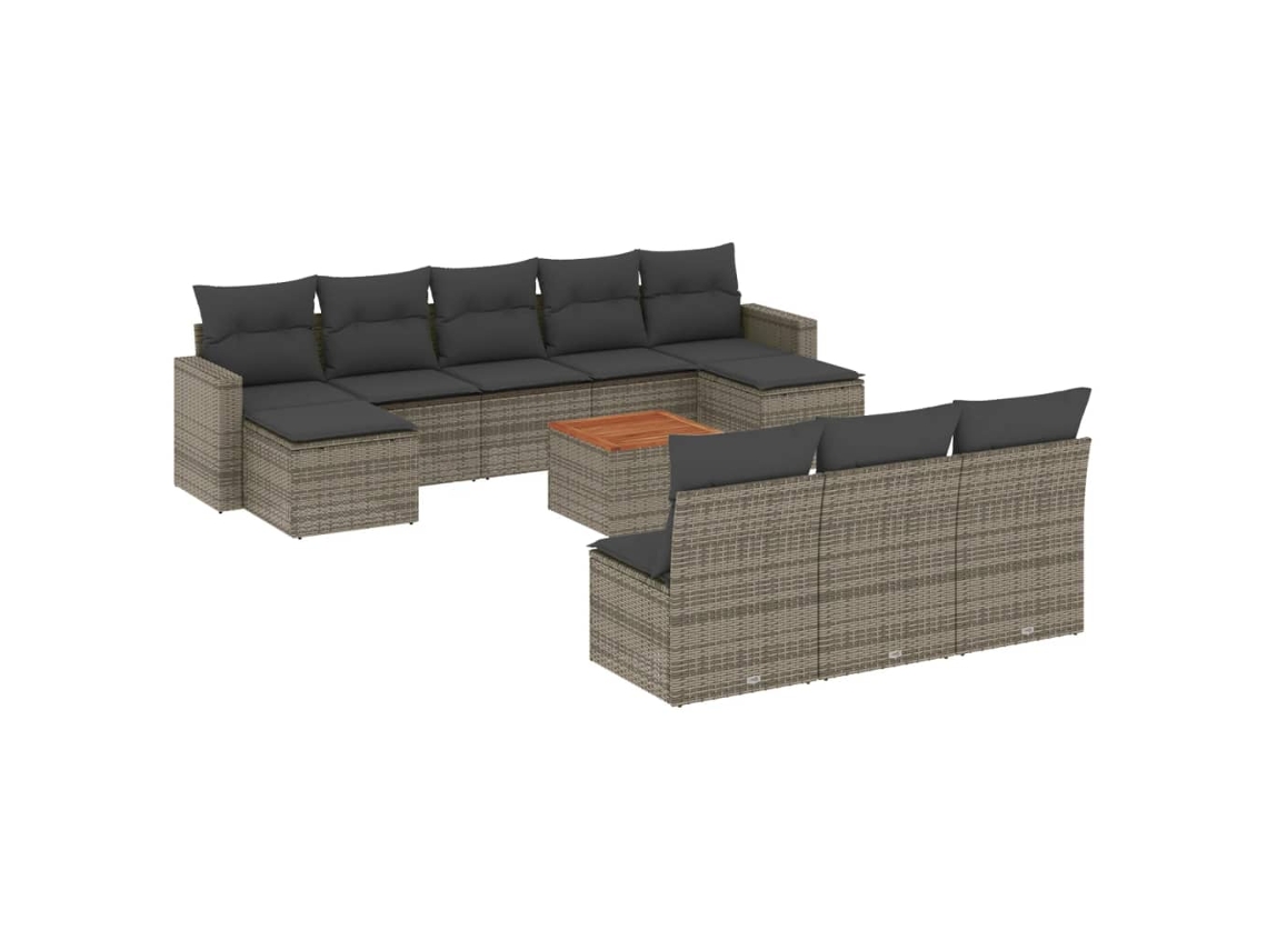 Conjunto 11 sofás de jardim c/ almofadões VIDAXL vime PE cinzento