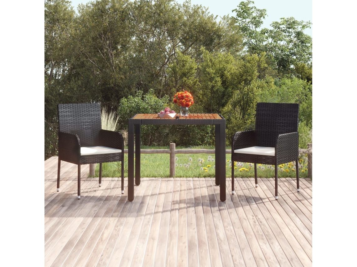 Mesa de Jardim com Tampo de Madeira 90X90X75 Cm Vime Pe Preto NONAME