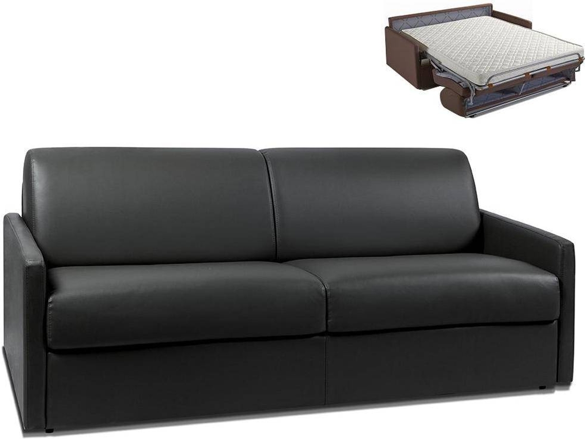 Sofá Cama Calife VENTE-UNIQUE (Preto - Pele sintética - 190x94x85 cm/Dimensões da cama: 160-179 cm)