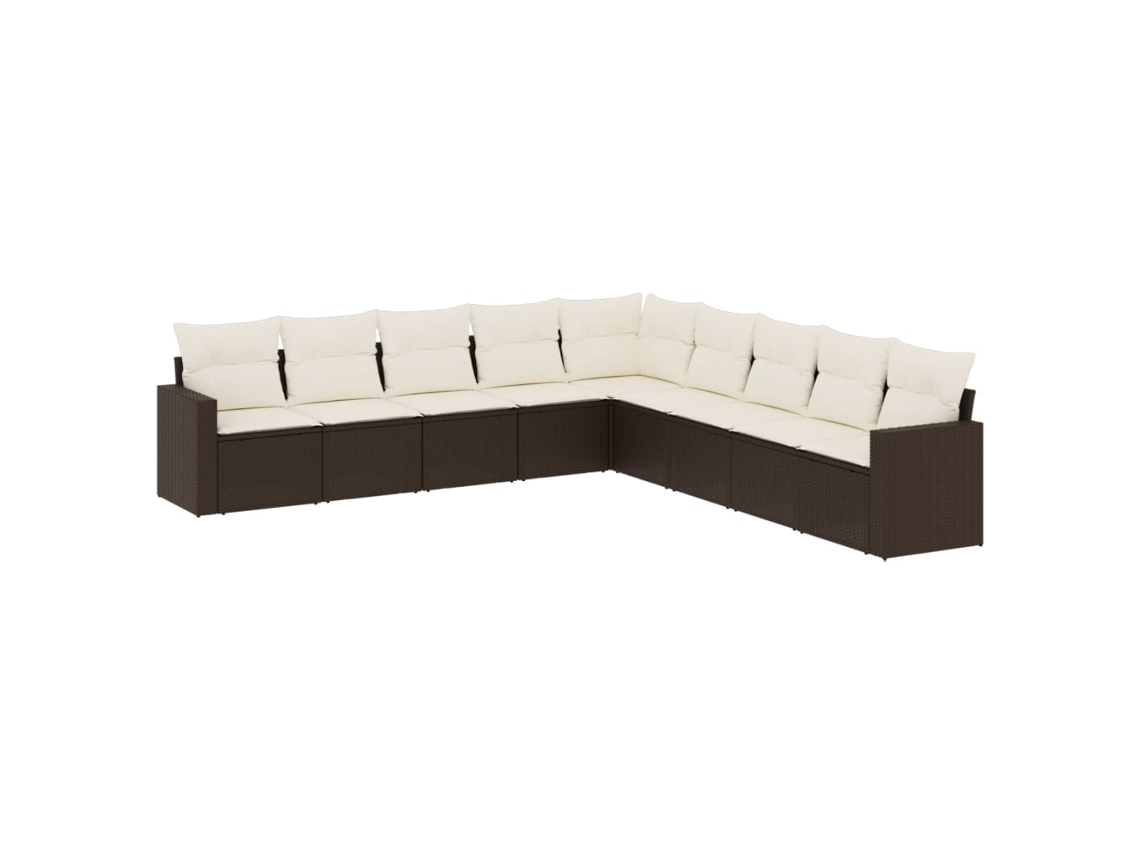 Conjunto 9 sofás p/ jardim c/ almofadões VIDAXL vime PE castanho