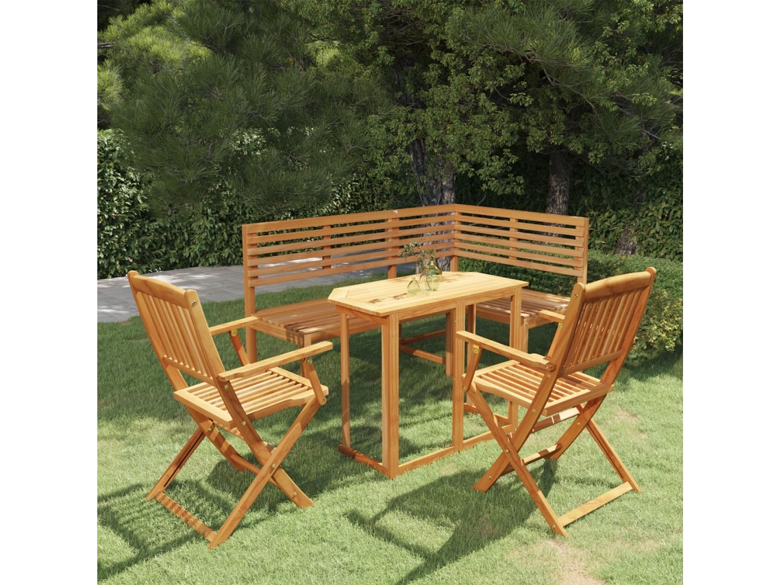 Conjunto Bistrô de Jardim com 4 Peças em Madeira de Acácia Maciça