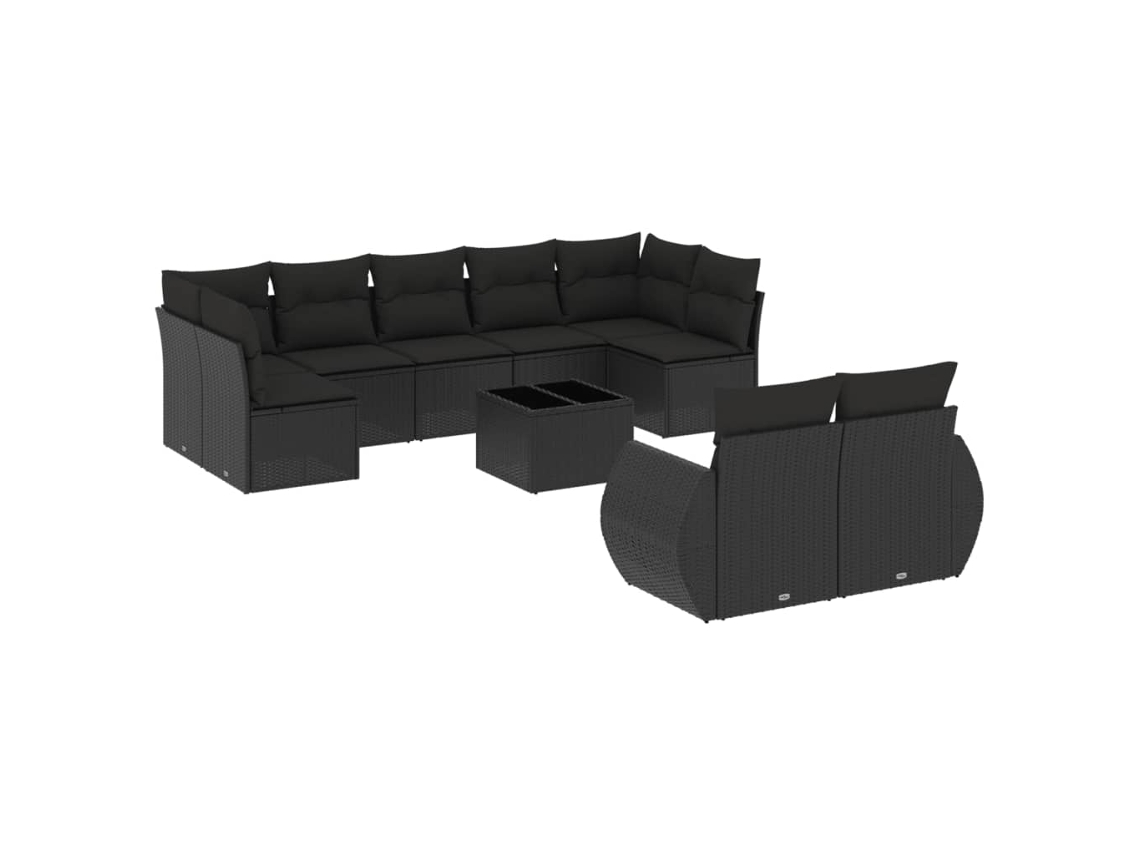 Conjunto 10 sofás de jardim c/ almofadões VIDAXL vime PE preto