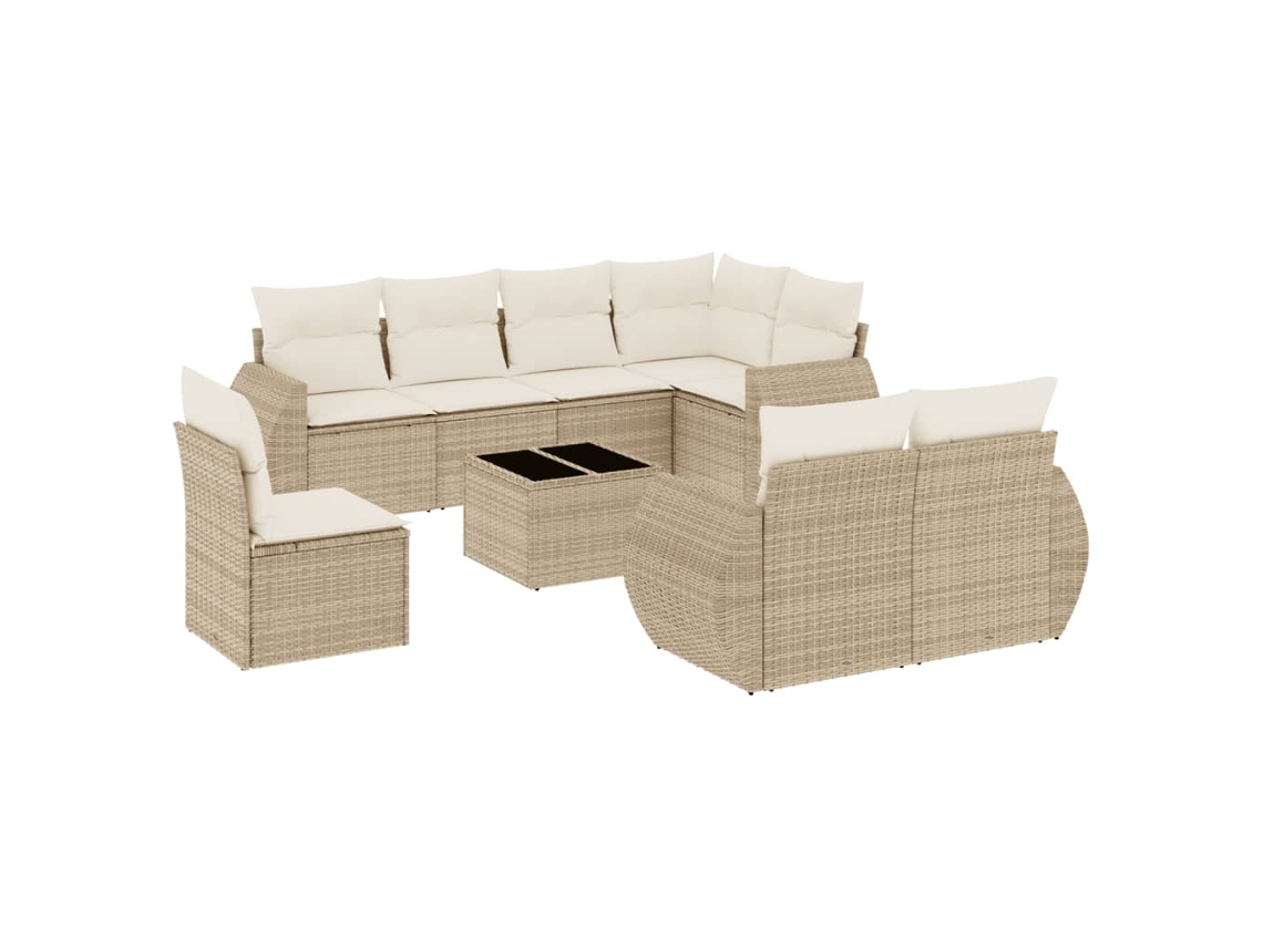 Conjunto 9 de sofás p/ jardim com almofadões vime PE bege