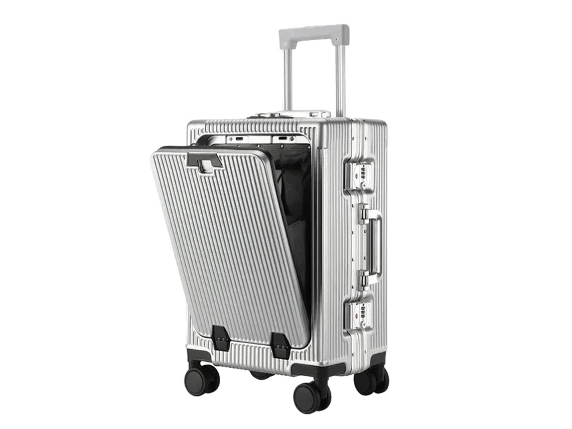 Mala Com Abertura Frontal, Bagagem Com Rodas, Material Abs Pc, Rodas Giratórias, Prateado, 20inches 500mm Oem