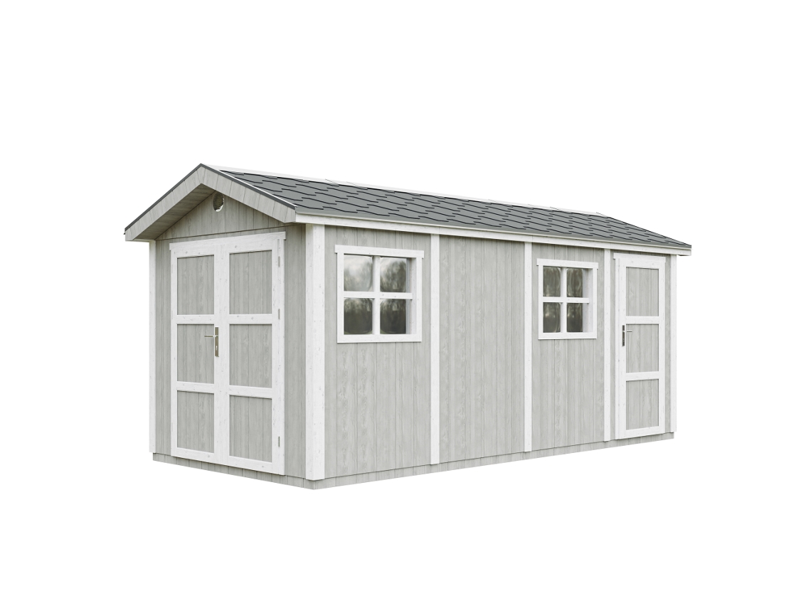 Casinha de jardim de alta qualidade, 11,47 m² (A252 x 250 x 530 cm), com piso e ladrilhos betuminosos, cor cinza tundra (Timbela M915c).