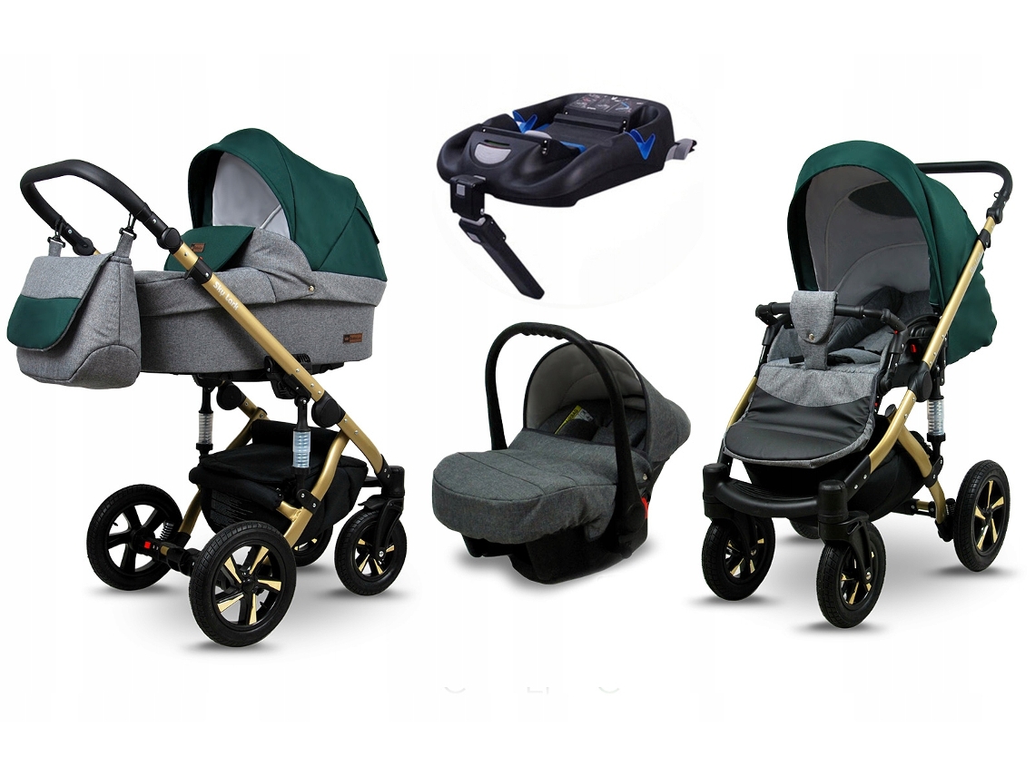 Carrinho de Bebé Multifuncional BABYLUX SKY LARK 4 Em 1 -Grey Flex Green GOLD FRAME - Ajustável e dobrável Construção leve em alumínio - Acessórios