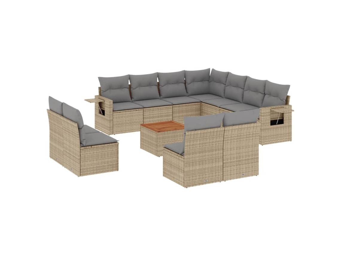 Conjunto 12 de sofás p/ jardim com almofadões VIDAXL vime PE bege