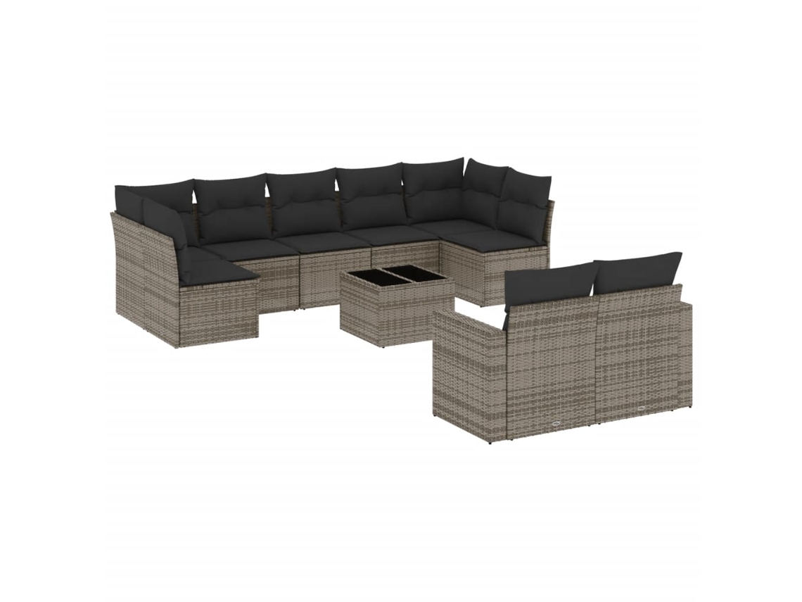 Conjunto 10 sofás de jardim c/ almofadões VIDAXL vime PE cinzento