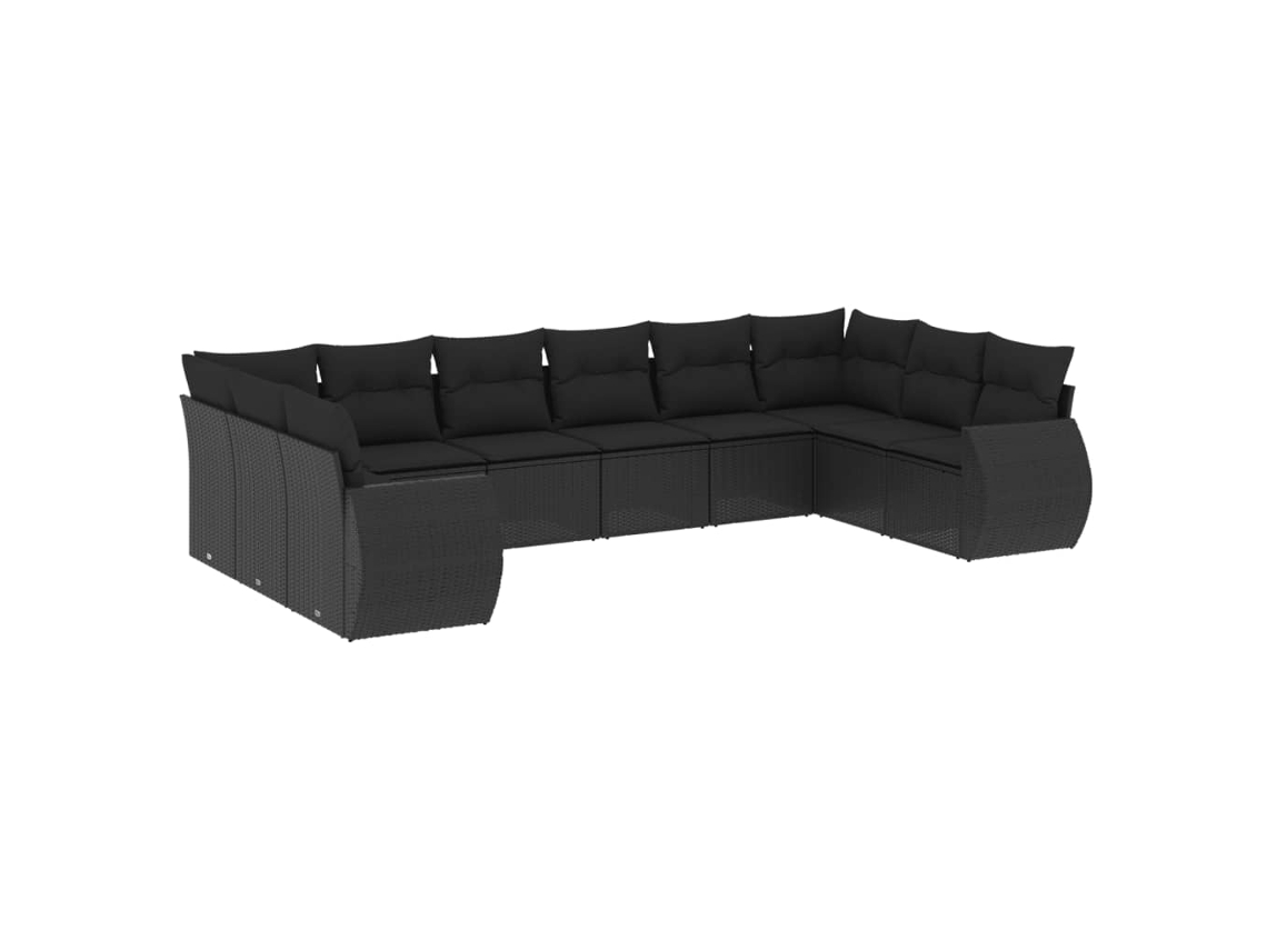 Conjunto 10 sofás de jardim c/ almofadões VIDAXL vime PE preto