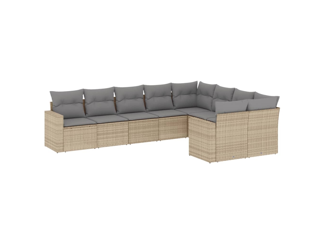 Conjunto 9 de sofás p/ jardim com almofadões vime PE bege