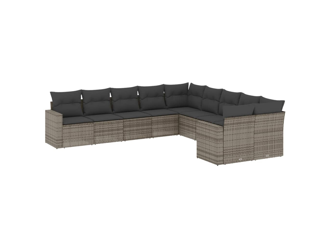 Conjunto 10 sofás de jardim c/ almofadões VIDAXL vime PE cinzento