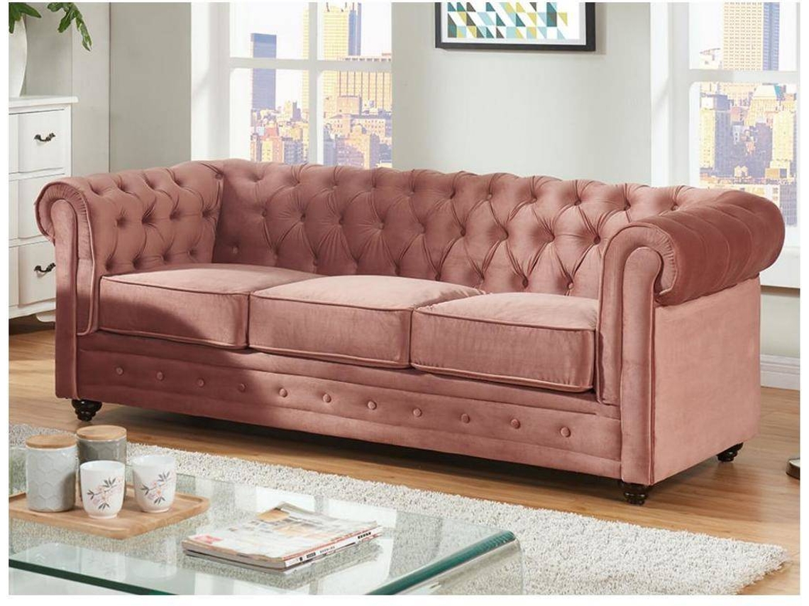 Sofá Fixo Chesterfield VENTE-UNIQUE (Rosa Claro - Tecido e Veludo - 205x88x72 cm)