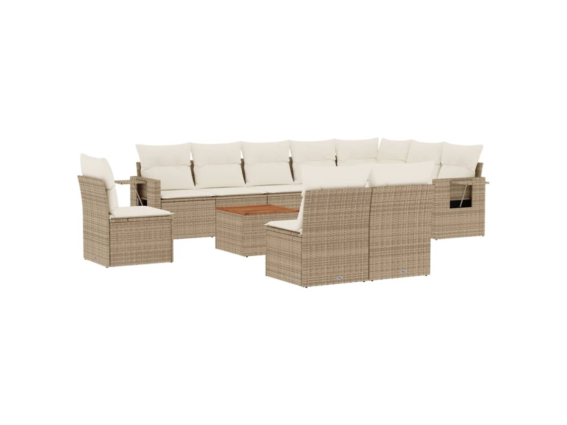 Conjunto 11 sofás de jardim c/ almofadões VIDAXL vime PE bege