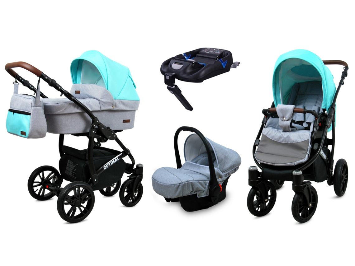 Carrinho De Bebé Multifuncional Babylux Optimal 4 Em 1 -silver Mint Black Frame - Ajustável E Dobrável Construção Leve Em Alumínio - Acessórios