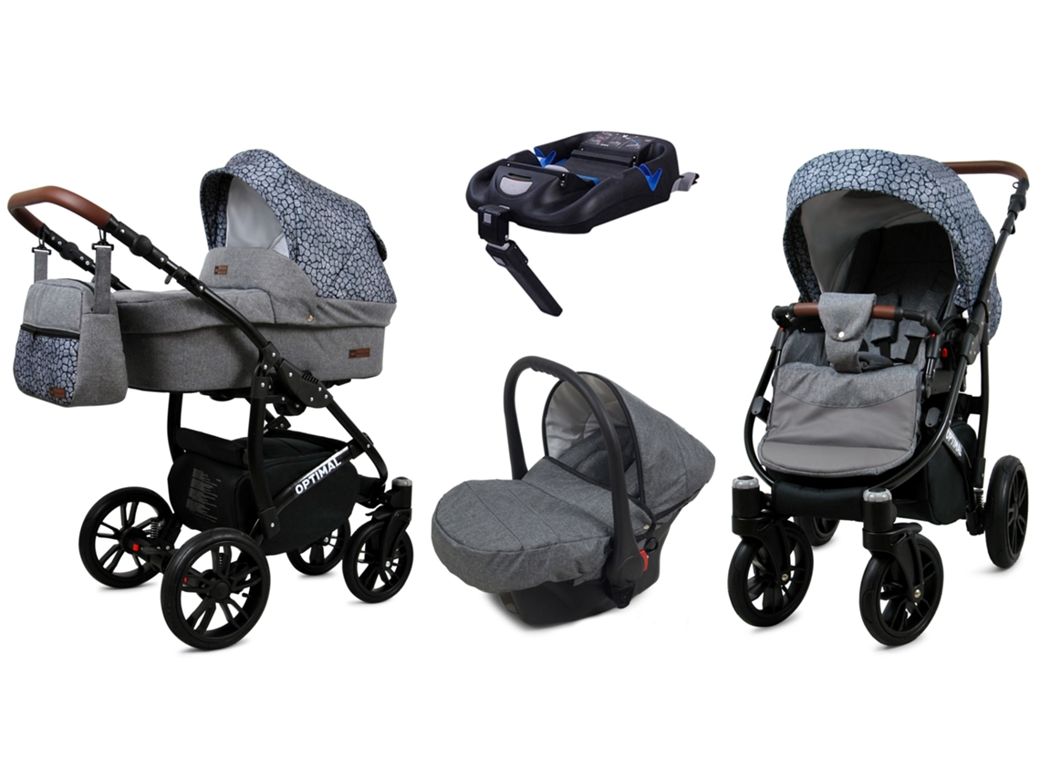 Carrinho De Bebé Multifuncional Babylux Optimal 4 Em 1 -silver Stone Black Frame - Ajustável E Dobrável Construção Leve Em Alumínio - Acessórios