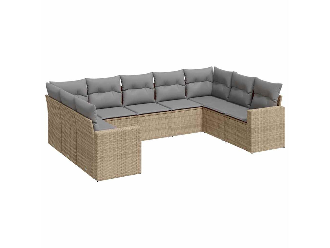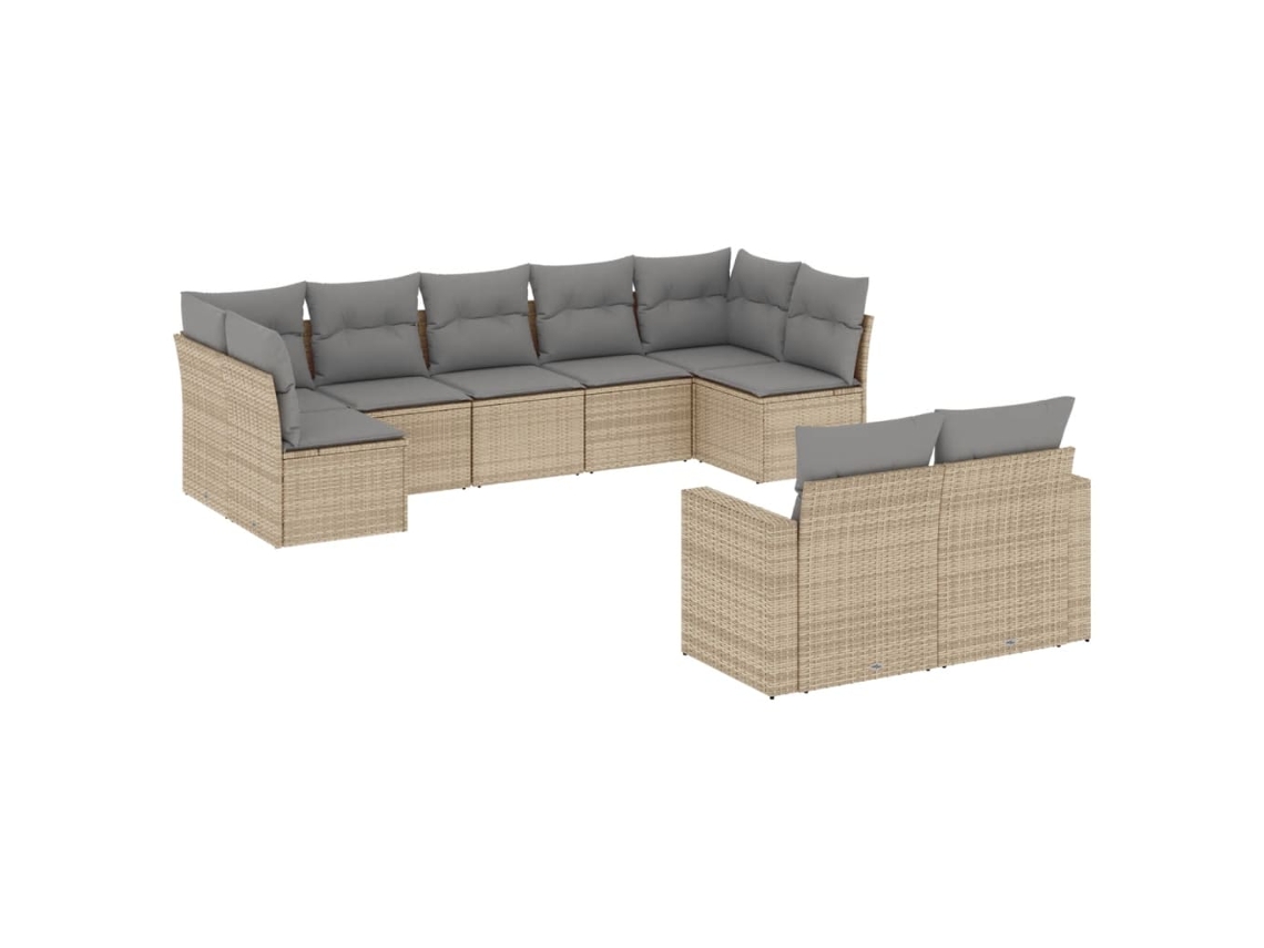Conjunto 9 de sofás p/ jardim com almofadões vime PE bege