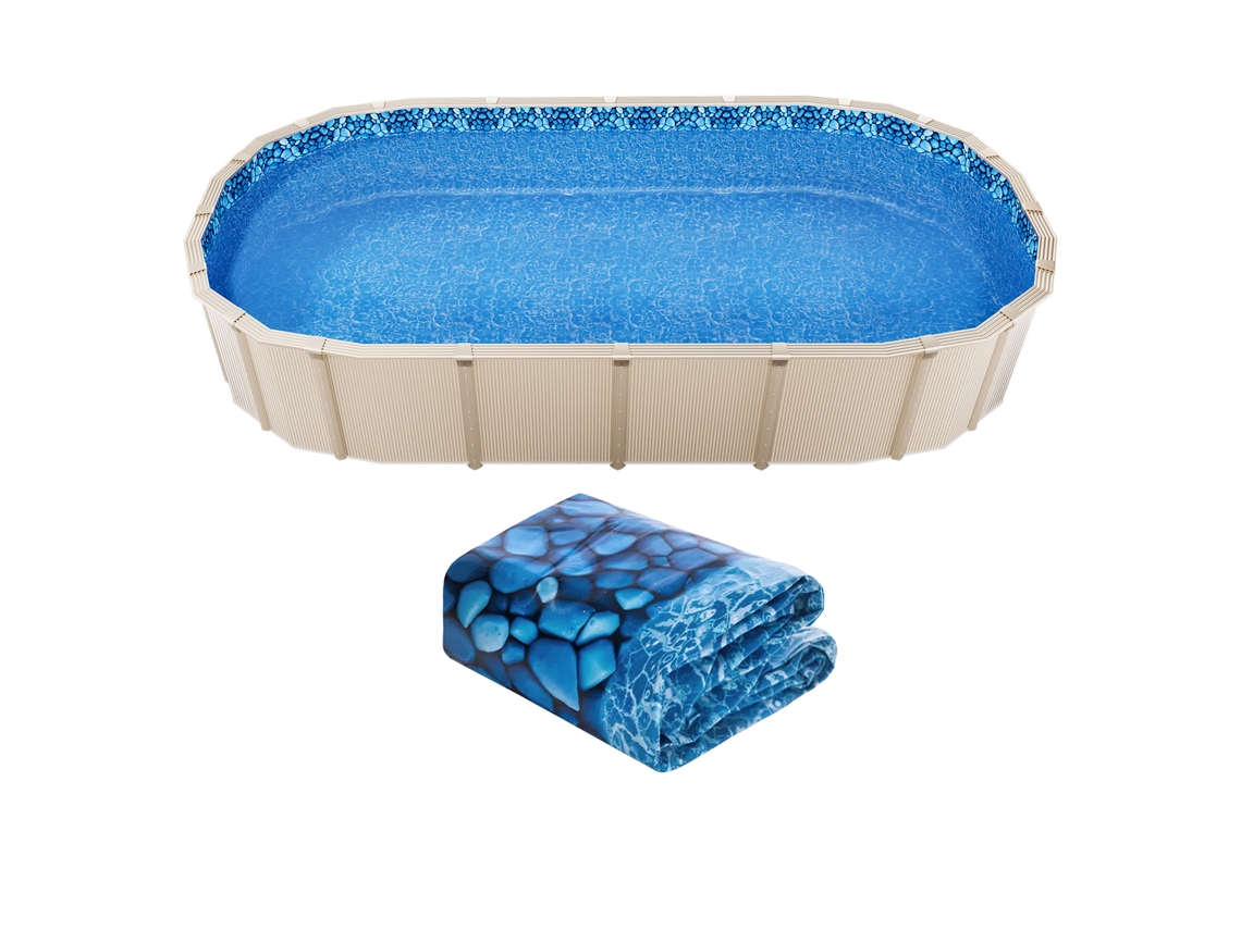 Revestimento Para Piscina Oval Succebuy De 15 X 30 Pés, Estilo Sobreposto, Altura Da Parede De 54 Polegadas