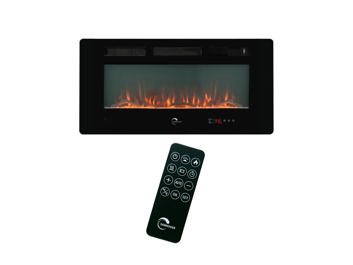 Lareira Elétrica Decorativa De Parede Com 10 Cores De Chama Led Valtaia Plat Sannover 2000 W / 102 Cm