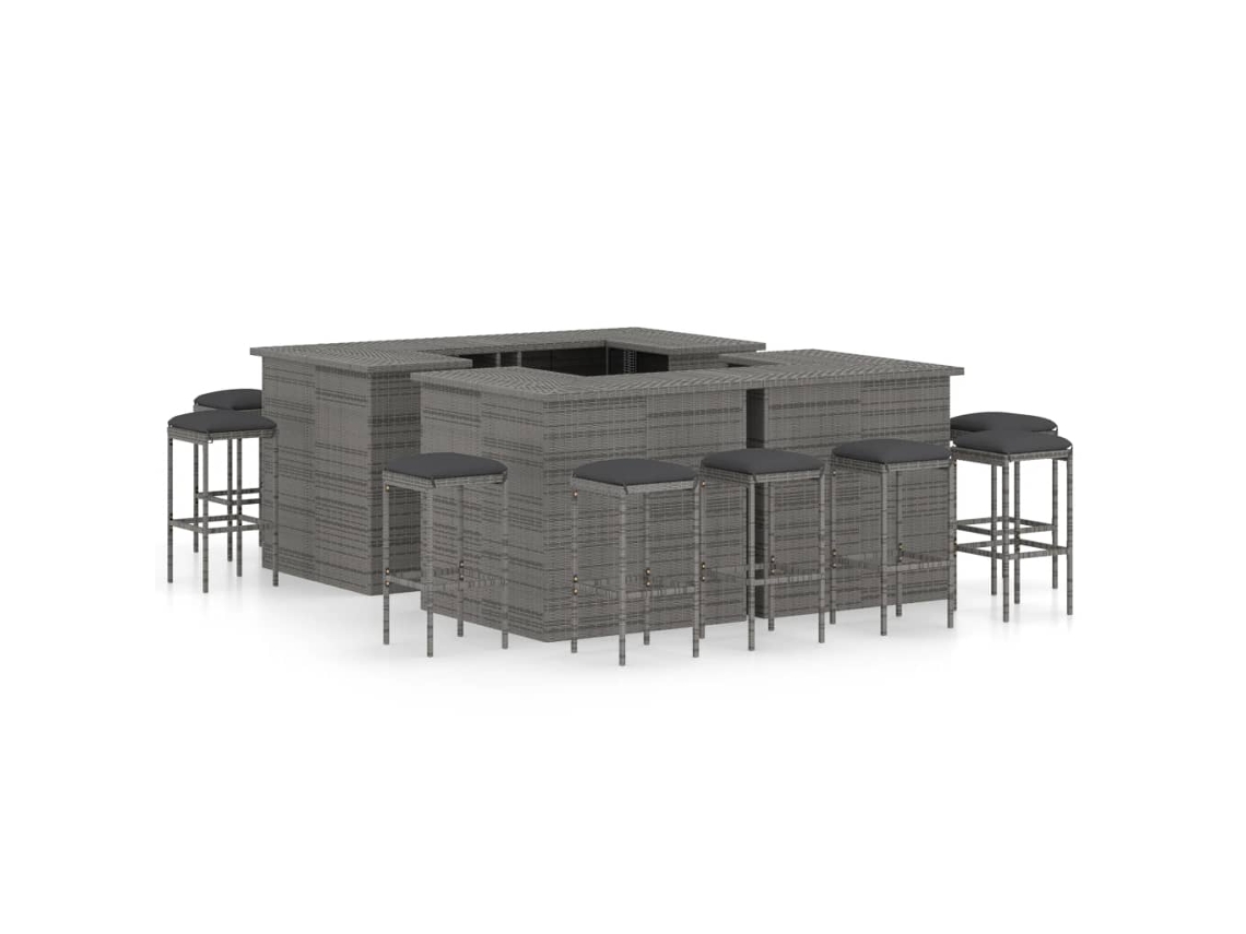 Conjunto de Bar de Jardim 16 Peças e Almofadas de Vime Sintético Cinza