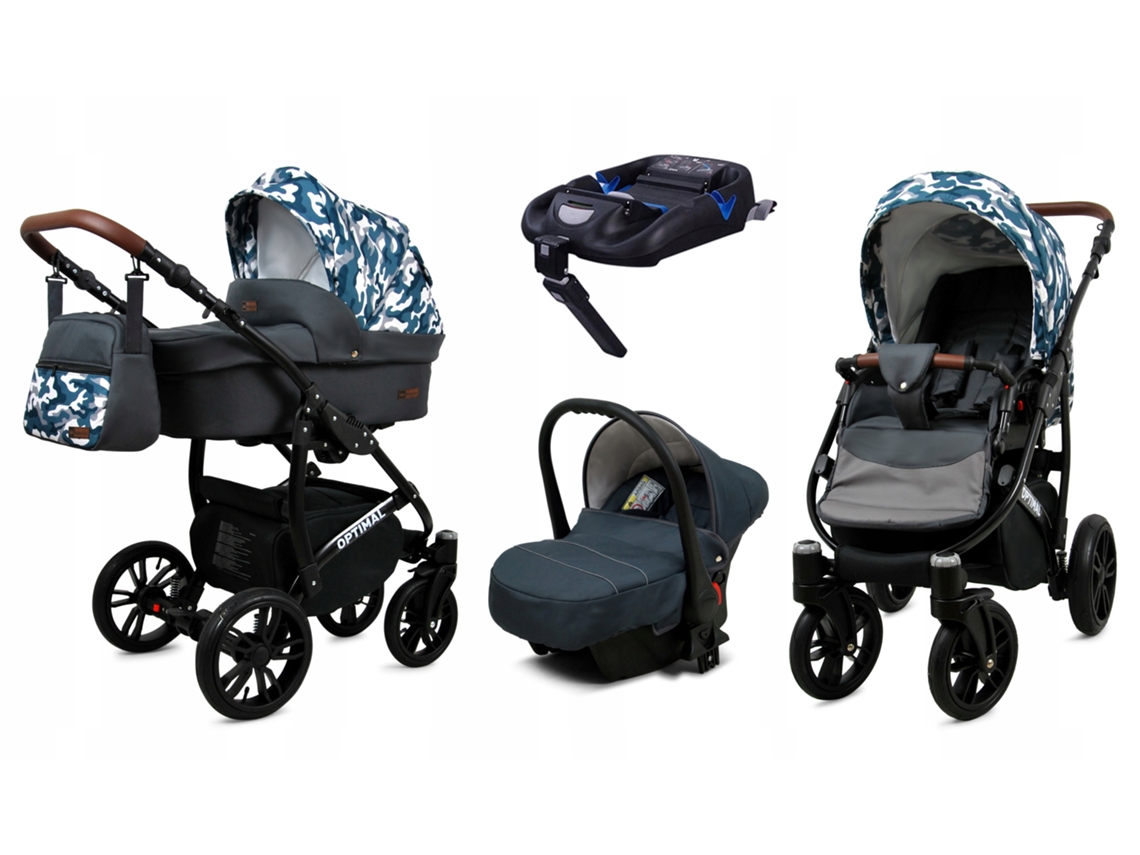 Carrinho De Bebé Multifuncional Babylux Optimal 4 Em 1 -grey Moro Black Frame - Ajustável E Dobrável Construção Leve Em Alumínio - Acessórios