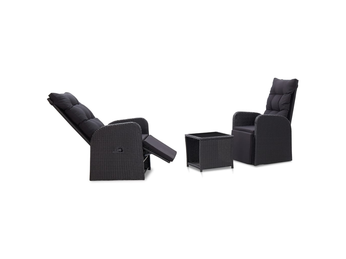 Mesa Bistrô de Jardim e Cadeiras 3 Peças e Almofadas de Vime Preto