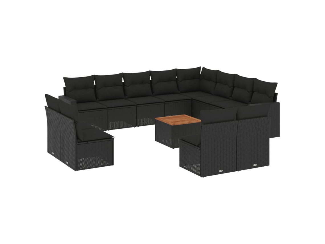 Conjunto 13 de sofás de jardim com almofadões VIDAXL vime PE preto
