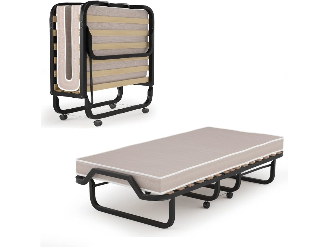 Cama Dobrável com Colchão 80X200 Cm Cama de Solteiro para Hóspedes com Estrutura Metálica Resistente e Colchão de Espuma COSTWAY