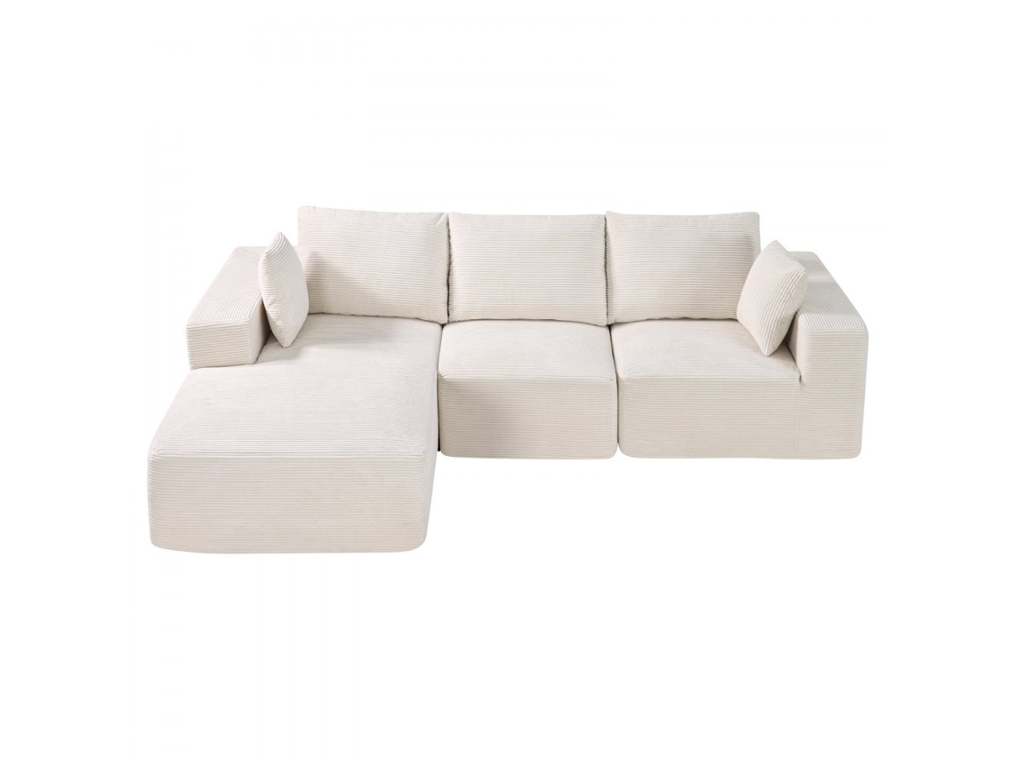 Sofá Modular Em L Com Chaise, Almofadas E Tecido Respirável Bege Tekmaquinas