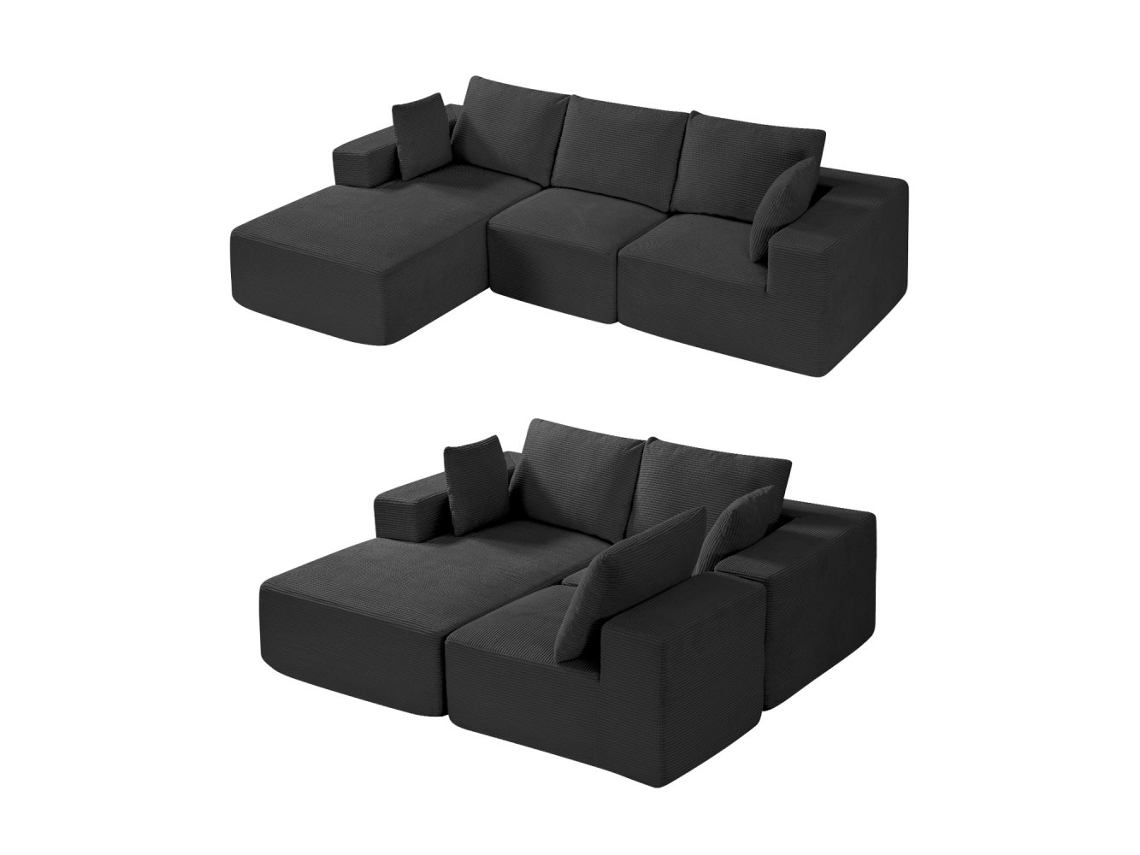 Sofá Modular Em L Com Chaise, Almofadas E Apoios De Braço, Tecido Confortável Preto 545 Kg Tekmaquinas
