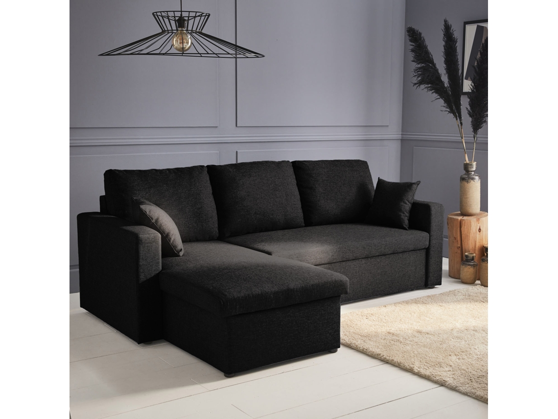 Sofá-Cama De Canto Em Tecido Preto Com Caixa De Arrumação SWEEEK (219 x 84 x 68 cm)