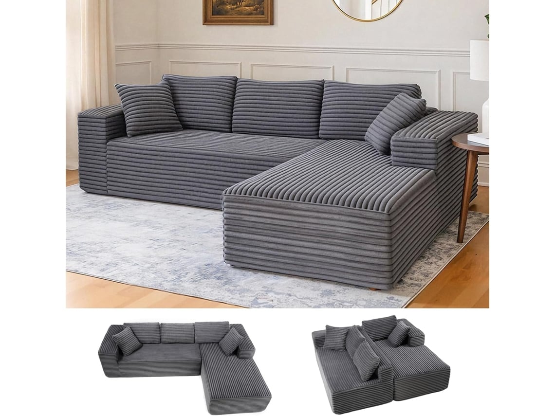 Sofá Modular De 105,sofá Em L Com Braços Largos, Tecido De Bombazine,chaise Longue,sem Necessidade De Montagem Comhoma