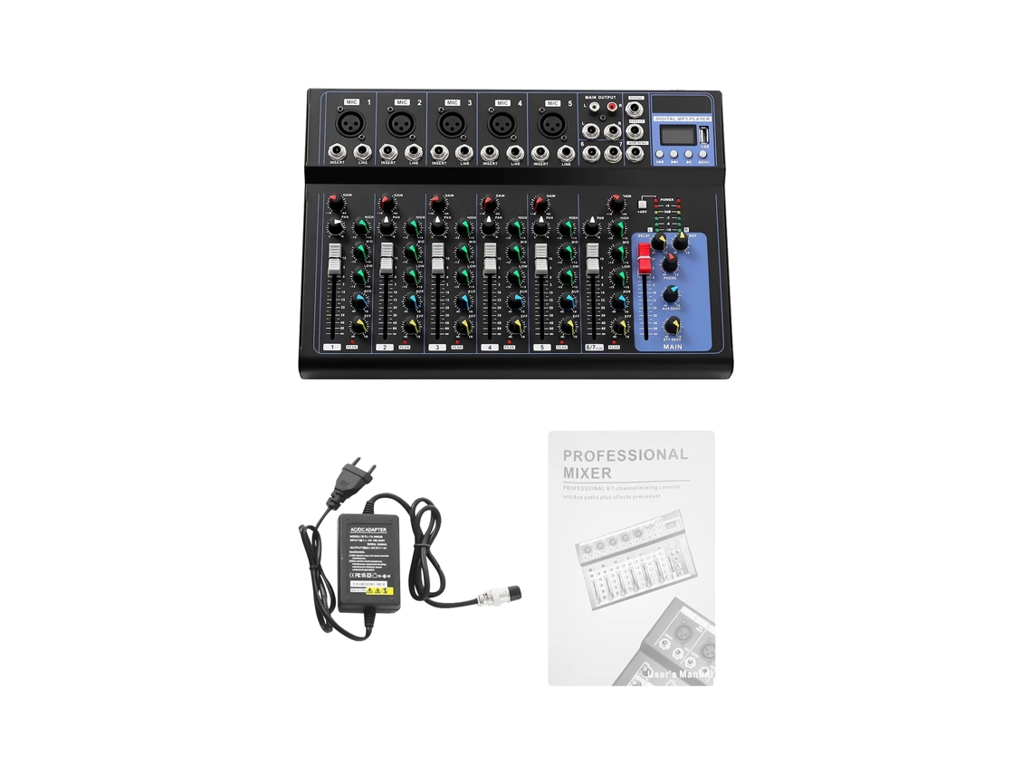 Mixer De Ãudio, 7 Canais, 6 Estilos Musicais Integrados, Preto Oem