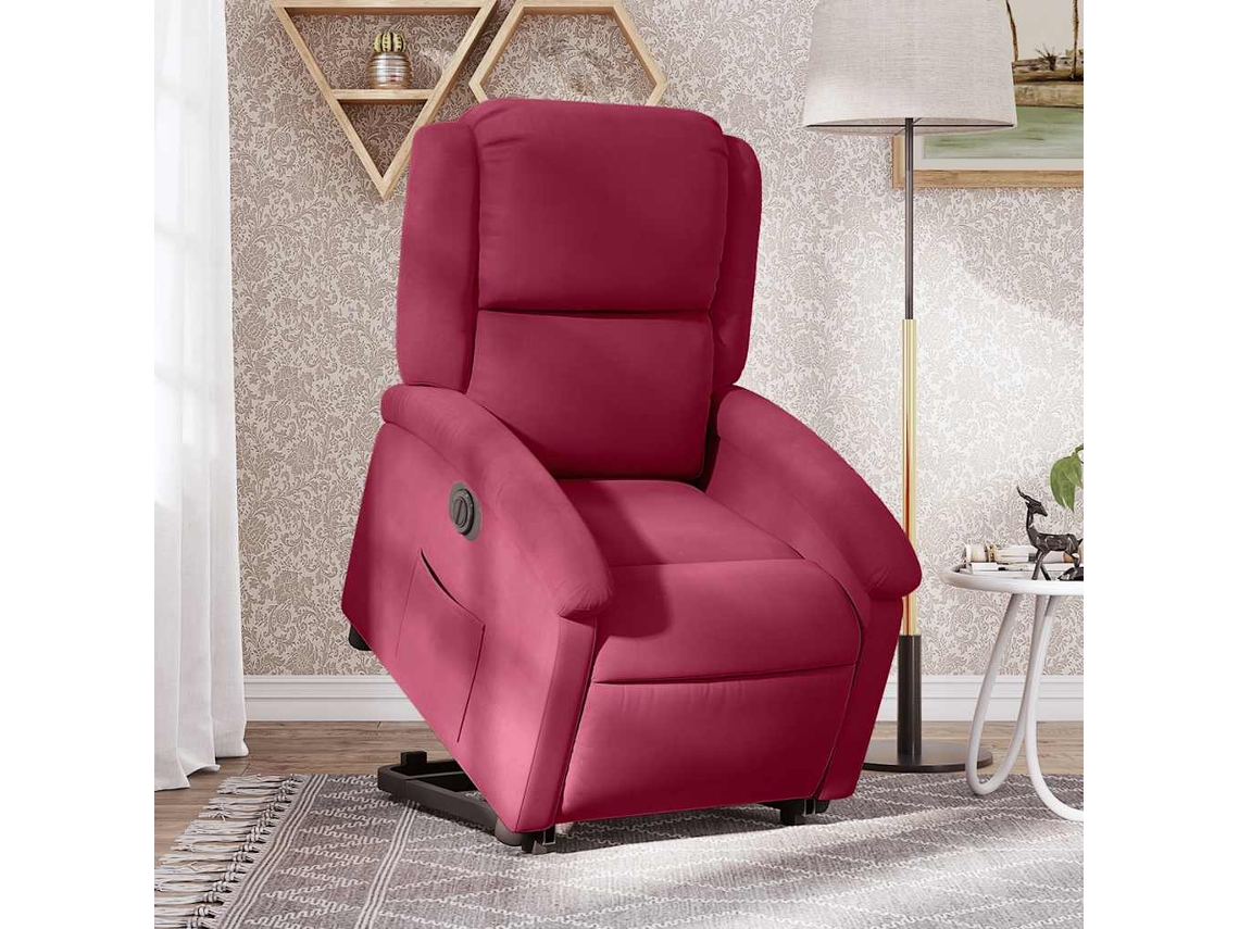 Poltrona reclinável elevatória elétrica veludo vermelho-tinto