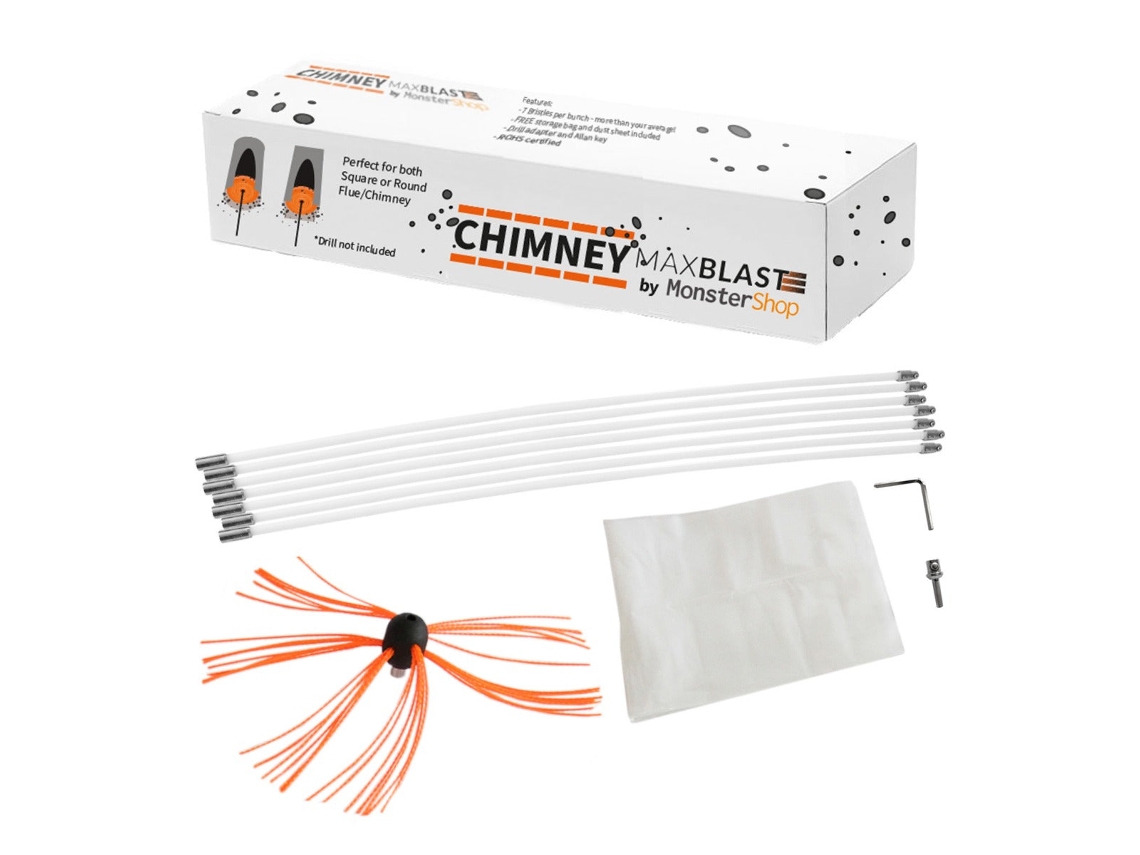 Metaescova Limpa Chaminés Escova Nylon 20m Kit Flexível 20 Hastes Monstershop