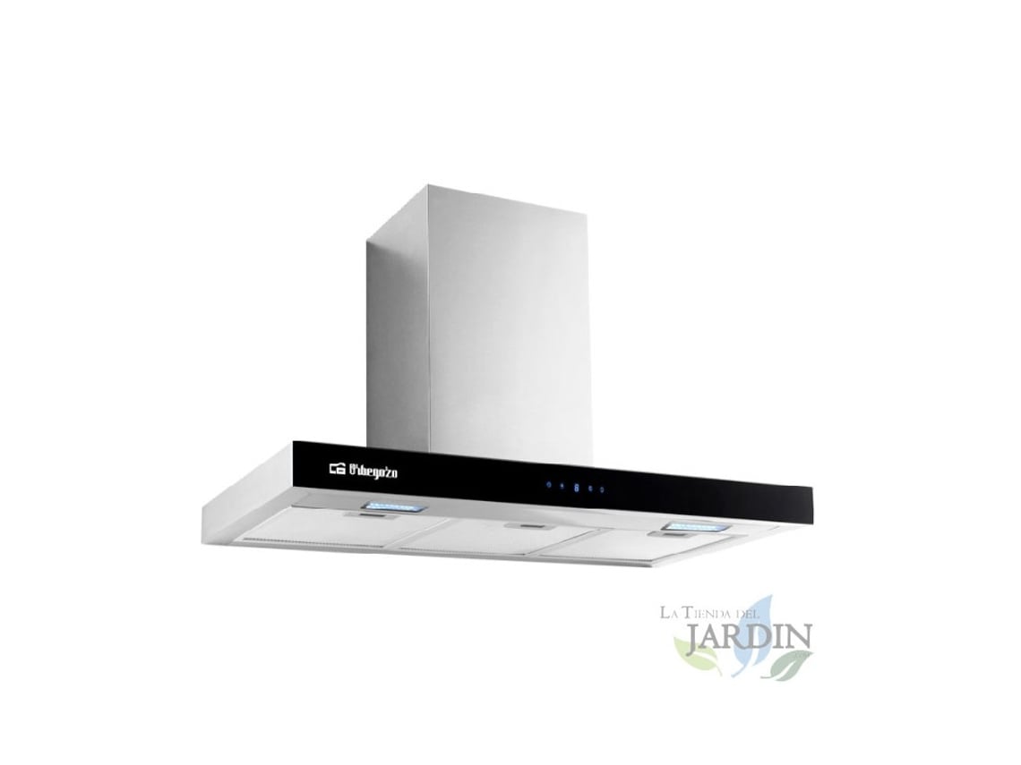Capuz decorativo com frente de vidro temperado preto ORBEGOZO Motor de 230W Classe Energética A ORBEGOZO