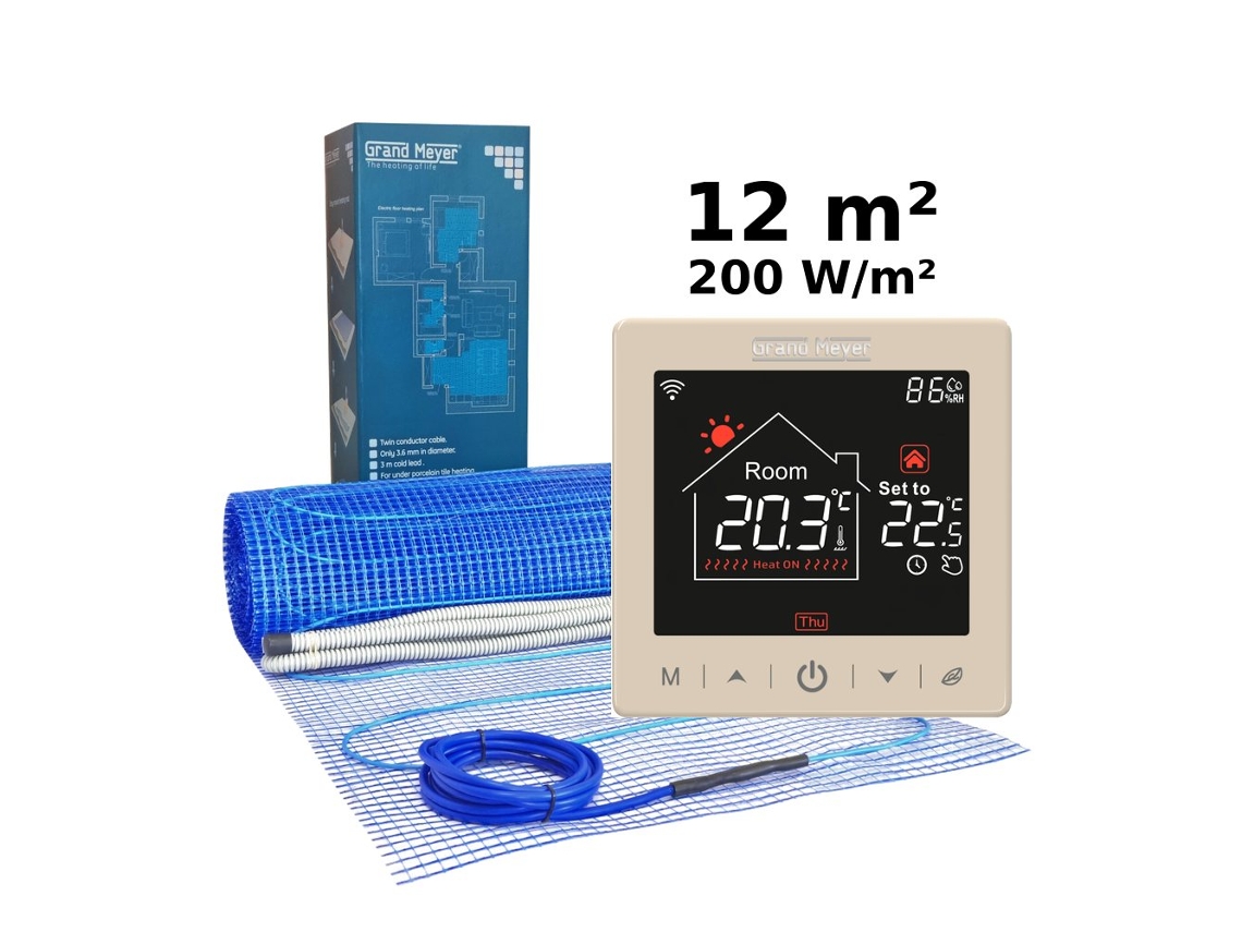 Kit De Aquecimento Elétrico Para Piso Radiante 12 Mâ², 200 W/mâ² Sn 15 Termóstato Wi Fi Programável Grand Meyer