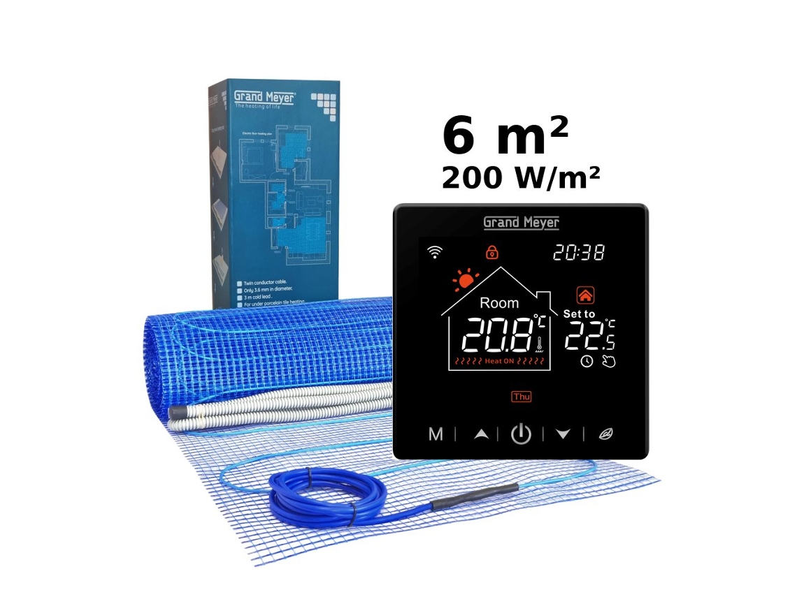 Kit De Aquecimento Elétrico Para Piso Radiante 6 Mâ², 200 W/mâ² Sn 20 Termóstato Wi Fi Programável Grand Meyer