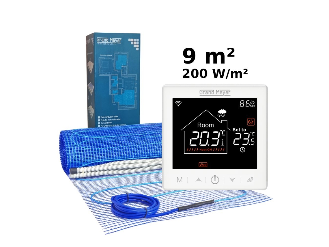 Kit De Aquecimento Elétrico Para Piso Radiante 9 Mâ², 200 W/mâ² Sn 10 Termóstato Wi Fi Programável Grand Meyer