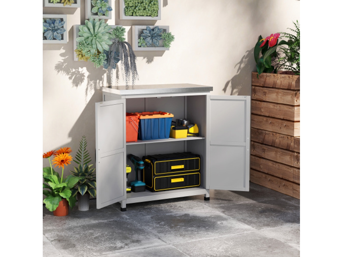 Armário De Jardim De Madeira, Para Exterior, Resistente Às Intempéries, Barracão Para Ferramentas Com Bancada, Porta Dupla, Prateleira, Armá Hvorstur