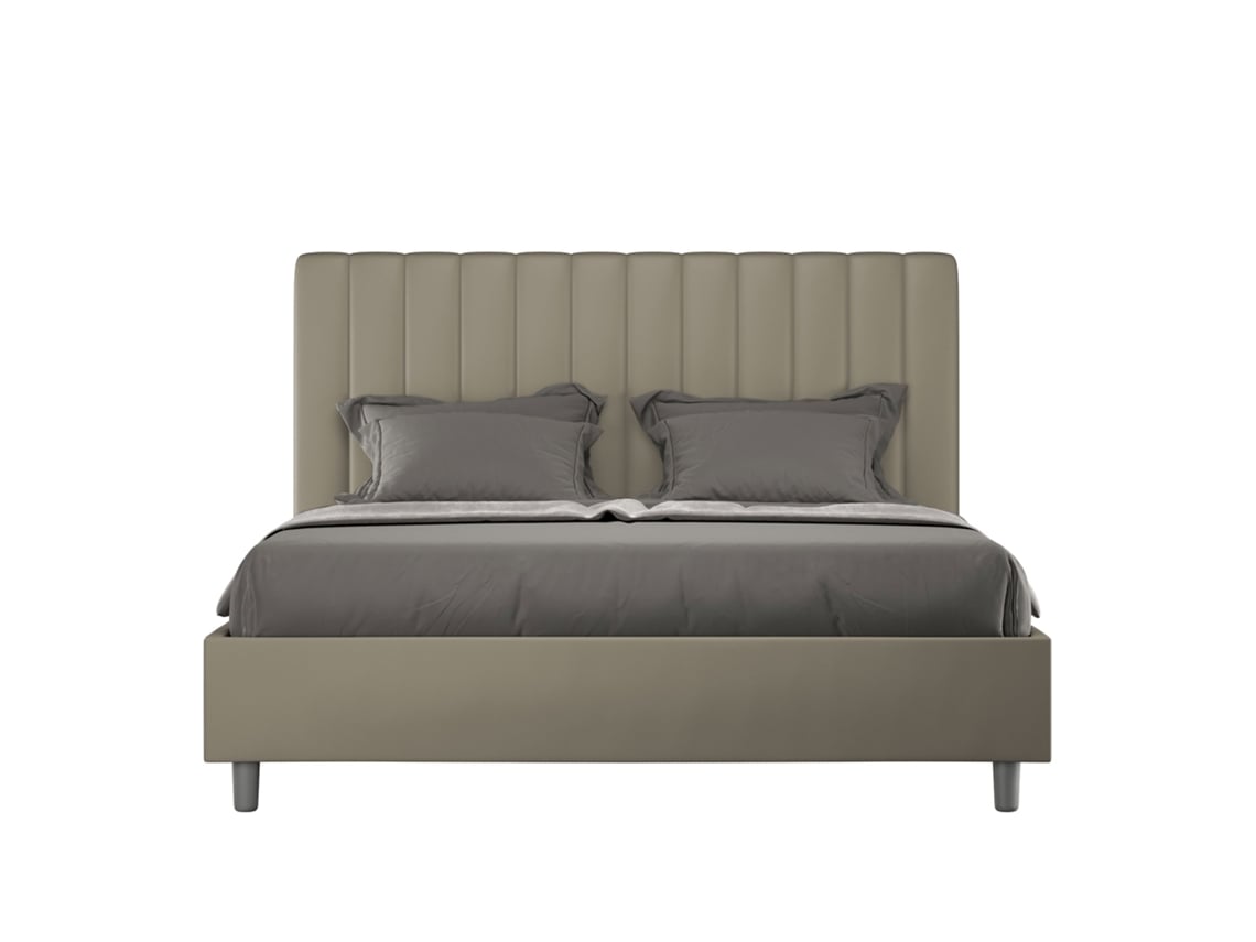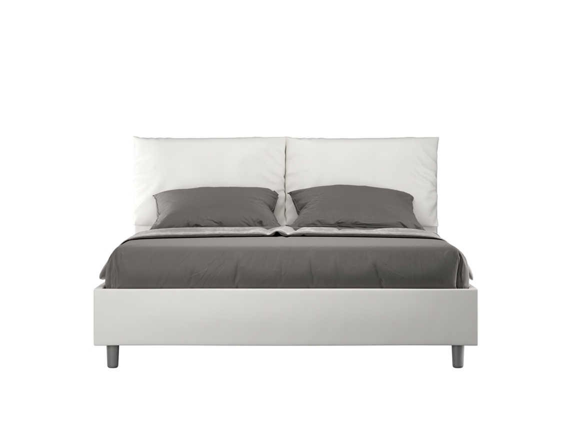 Cama de Casal com Arrumação Estofada MikaITYHOME (140 x 190 cm - Painéis de Melamina e Couro Sintético)